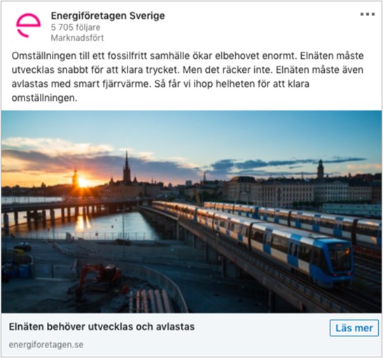 Elnäten behöver utvecklas och avlastas (Exempel LinkedIn)