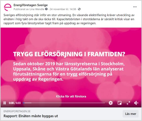 Trygg elförsörjning, intervjufilm med länsstyrelserna i Stockholm och Uppsala (Exempel Facebook/Instagram):
