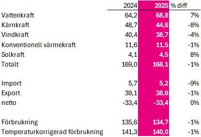 Elåret 2025 i TWh